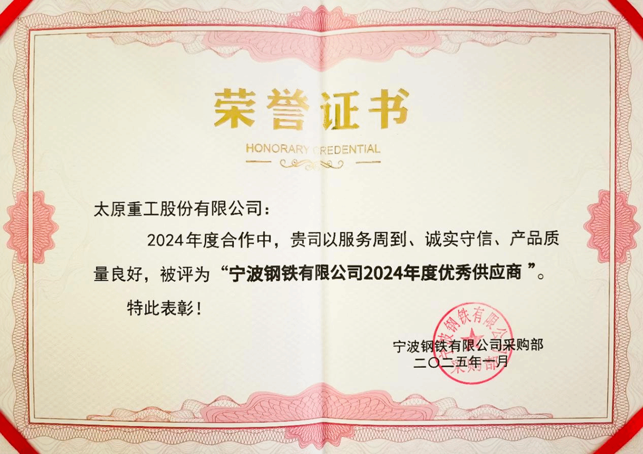 近日,憑借頂尖的技術(shù)實(shí)力、過硬的產(chǎn)品質(zhì)量、優(yōu)質(zhì)的用戶服務(wù),太重榮獲“寧波鋼鐵有限公司2024年度優(yōu)秀供應(yīng)商”稱號。值得一提的是,公司已連續(xù)四年獲得此項(xiàng)榮譽(yù),成為用戶供應(yīng)商體系中的典范。
